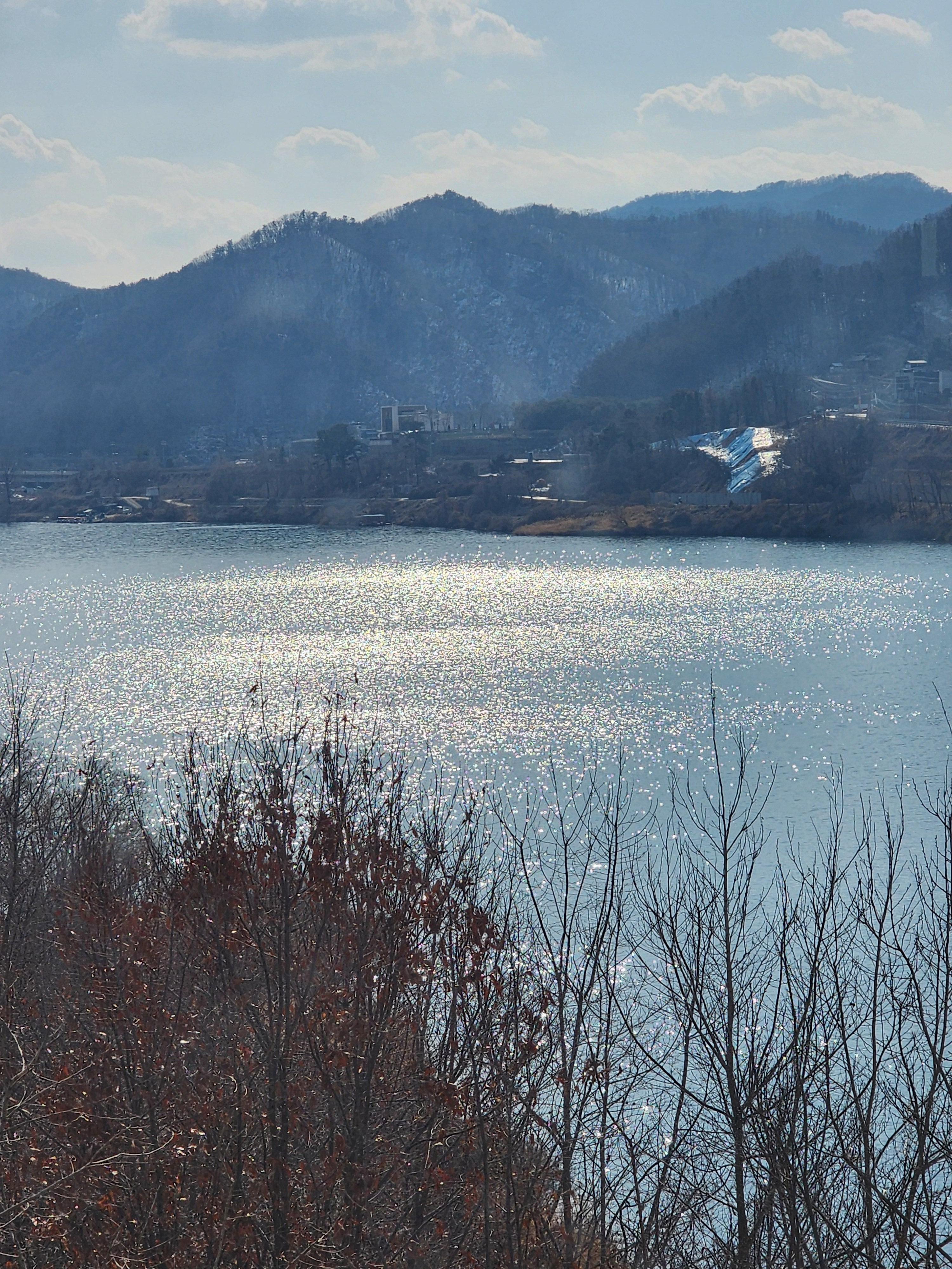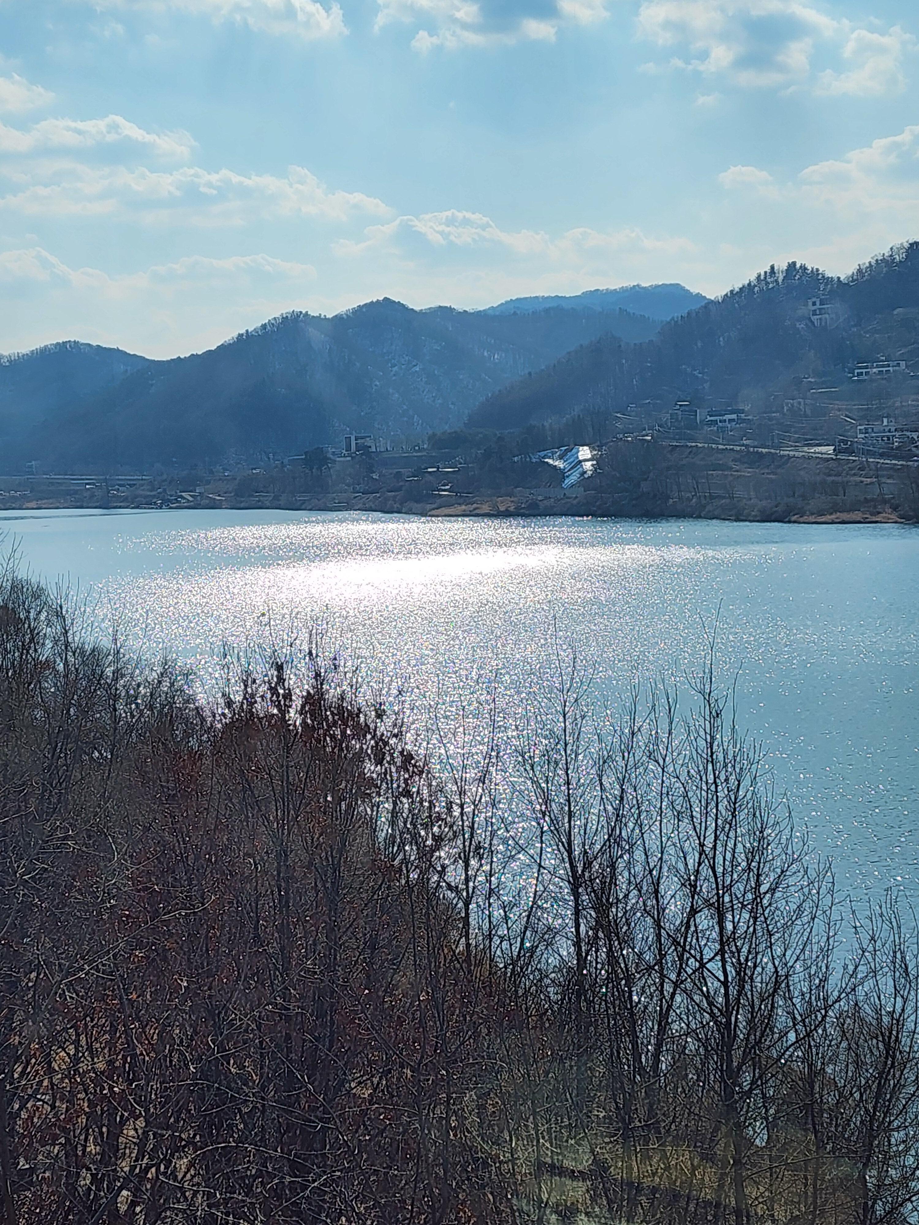 강을 가만히 쳐다보니 윤슬이 정말 예쁘더라고요. 정말 정신없이 발광을 하는데 신기했어요.