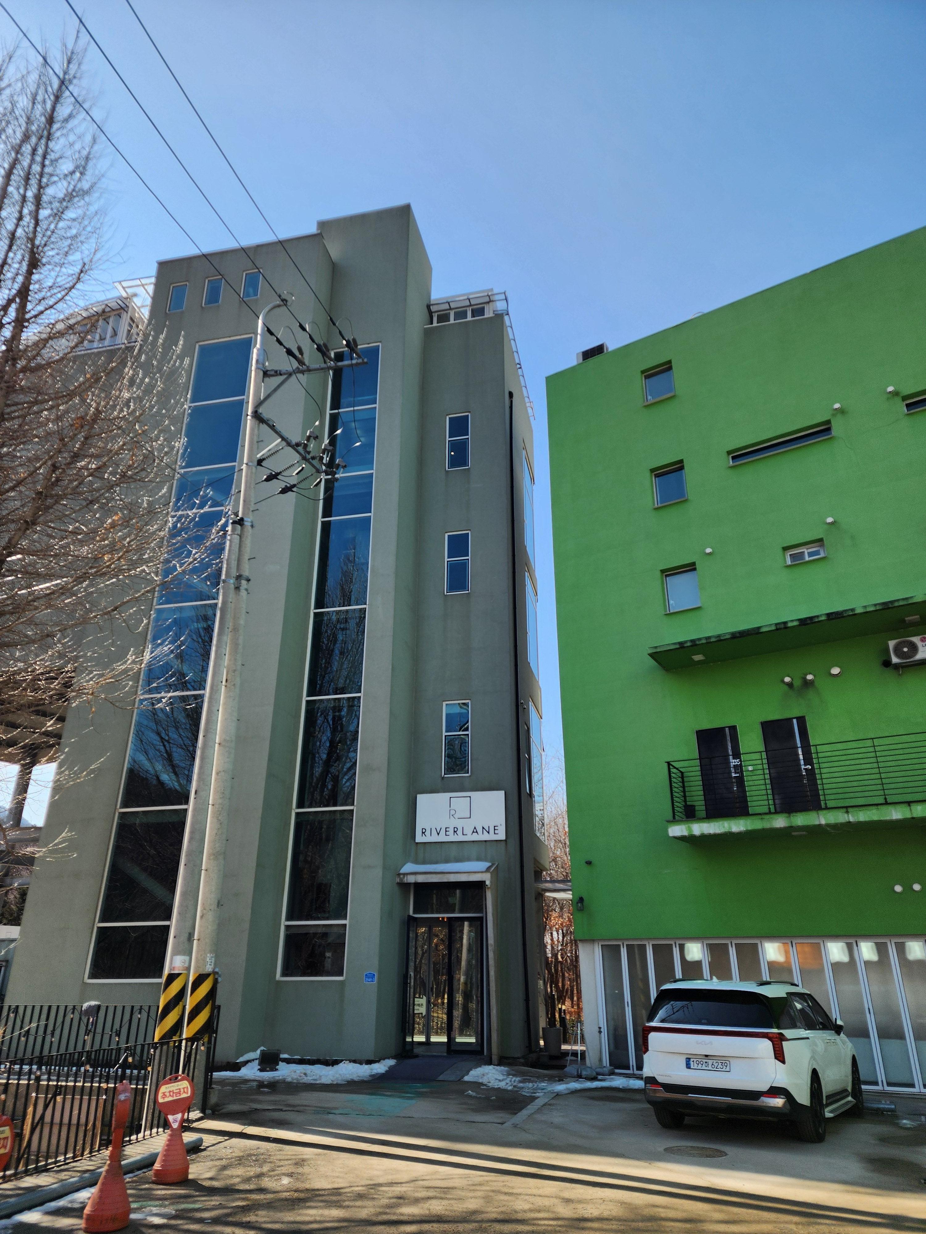 건물 뒤쪽에 주차장이 넓게 있어요